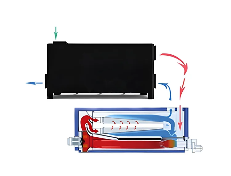 1) Naudojant aukštos temperatūros išmetamųjų dujų dujas, norint šildyti gryną orą arba normalios temperatūros vandenį, galima žymiai sumažinti energijos atliekas.
